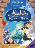 Aladdin (Aladin)DVD KinderfilmNeuerscheinung 13.Januar 2005 jetzt gibt es bei Aladdin (Aladin) und die Wunderlampe noch eine weitere Ausgabe und der König der Diebe. In heller Aufregung ist das Land Agrabah. Sie stehen kurz vor einer großen Hochzeit. Aladdin hat seine Herzensdame Jasmin gefunden und möchte diese Heiraten. Doch bevor ist zum Ja Wort kommt, gibt es in dem Land noch eine große Aufregung. Die Zeremonie wird gestört von Cassmin. Er und seine Räuber sind sehr gefürchtet. Cassim ist auf der Suche nah einem Schatz. Wenn man die Hand des Midas berührt, wird alles in Gold verwandelt. Aladdin muss sich zuerst noch auf die Suche nach den Räubern begeben. Er wird begleitet von dem Lampengeist Dschinni. Dieser ist sehr witzig. Aladin bekommt zwei Sachen damit gelöst. Er kann seine Braut Jasmin heiraten. Gleichzeitig erfährt er, das sein Vater überhaupt nicht verschollen ist. Diese Räuber bringen in auf die Spur des Vaters.... In dieser neuen Folge gibt es einige Neuerungen. 5 neue Lieder sind enthalten, die Kinder haben jede Menge Spaß zu erwarten und viel Romantik mit Jasmin erwartet diese. Diese DVD Film ist ein muss für jeden Disney Fan. Den wohlbekannten Streifen ist wohl immer noch Aladdin und die Wunderlampe, den es ebenfalls auf DVD gibt. Hier geht es um einen Jungen, der nach Reichtum und Macht strebt. Aladin wird Opfer von Zaubermächten. Wird er sich befreien können von dem Fluch der dann auf ihn lastet? Aladdin ist nicht nur ein Märchen für Kinder, nein, man kann ruhig mit der ganzen Familie sich dies ansehen. Einfach bezaubernd und schön! Entstanden ist dieser Film Aladdin bereits 1992 als Zeichentrick Serie. Sie können sich amüsieren über Jafar und sein Papagei. Oder auch die Liebesgeschichte zwischen Aladin und seiner schönen Jasmin wird sie verzaubern. Die Stimme des Flaschengeistes ist kein anderer wie Peer Augustinki. Außer diesen beiden Folgen gab es noch ein Abenteuer aus 1001 Nacht. Das Märchen Dschafars Rückkehr hat bereits großen Erfolg erzielt und läßt für alle Disneyfans von Aladdin nichts offen. Alle Disney Produktionen sind musikalisch untermalt und bieten eine sehr gute Unterhaltung. Die Animationen sind wirklich erstklassig. Aladdin! |